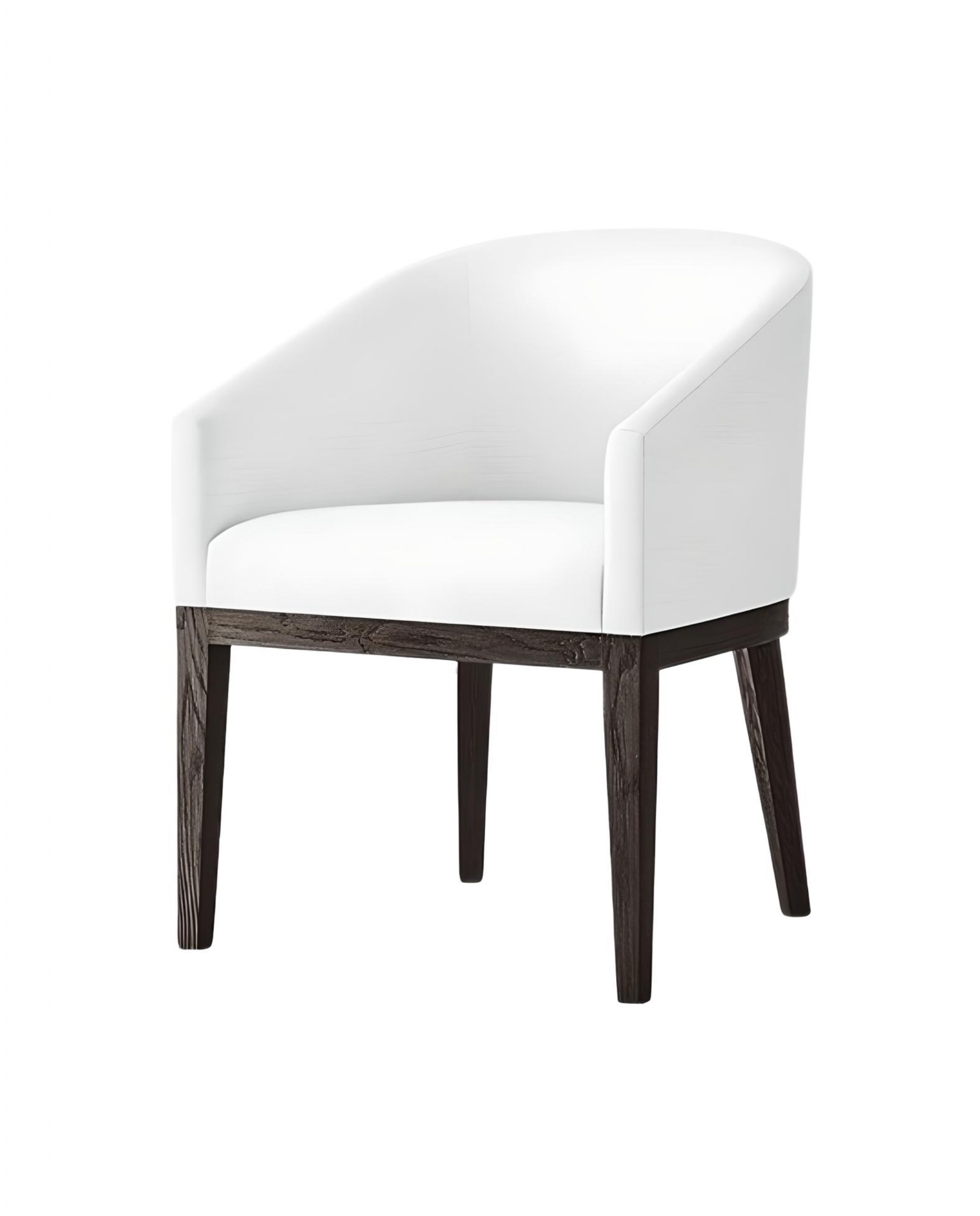 The Audrey dining armchair is a modern reimagining of the traditional dining chair. The curved back makes this chair a stylish addition to any dining room. The chair can be customised to fit your specific needs, from fabric to wood stain